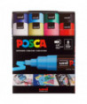 Create bold, high-impact artwork with the POSCA PC-8K Paint Markers, Broad Chisel Tip (8 mm), Assorted Colors, Set of 8. Designed for artists who want strong coverage and expressive strokes, these water-based paint markers deliver rich, opaque color on virtually any surface, including canvas, paper, wood, metal, glass, plastic, stone, and fabric. The broad 8 mm chisel tip allows for dynamic line variation, from thick fills to crisp edges, making it ideal for lettering, murals, signage, and large-format illustrations. The quick-drying, lightfast paint layers cleanly without bleed-through, producing durable, matte results that resist smudging and fading. Each marker is refillable and features a reversible tip for extended use. Vibrant, blendable colors and multi-surface versatility make POSCA PC-8K markers a go-to choice for artists, students, makers, and educators.
