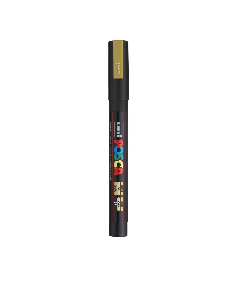 Achieve smooth, precise lines with the POSCA PC-3M Paint Marker, Fine Bullet Tip (0.9–1.3 mm), Gold. This versatile marker size is perfect for controlled outlining, drawing, lettering, coloring, and detailed embellishment across a wide range of creative projects. The water-based, opaque paint delivers vivid, metallic gold coverage on paper, canvas, wood, plastic, metal, glass, ceramic, stone, and fabric, making it one of the most popular multi-surface markers used by students, artists, and makers. The fine bullet tip provides consistent, clean strokes with excellent control, ideal for both small-scale artwork and refined mixed-media work. Colors dry quickly, layer smoothly, and resist smudging or bleed-through. With a valve-controlled ink system for even paint flow and highly pigmented paint that remains vibrant over time, POSCA PC-3M markers are the go-to choice for detail-rich creative expression on any surface.