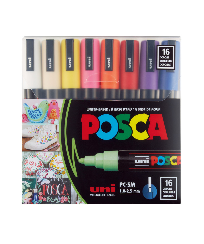 POSCA PC-5M Paint Markers, Medium Bullet Tip (1.8-2.5 mm), Assorted Colors, Set of 16