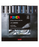 Explore dramatic contrast and graphic linework with the POSCA PC-5M Paint Markers, Monotone Colors, Set of 8. Featuring reversible medium bullet tips, these markers deliver smooth, matte, opaque coverage ideal for lettering, outlining, illustration, and mixed media. The water-based paint dries quickly and resists smudging and bleeding on any surface. This monochromatic set is perfect for artists who prefer bold, minimalist designs and high-contrast artwork. Colors Included: White, Beige, Silver, Grey, Slate Grey, Deep Grey, Navy Blue, Black.