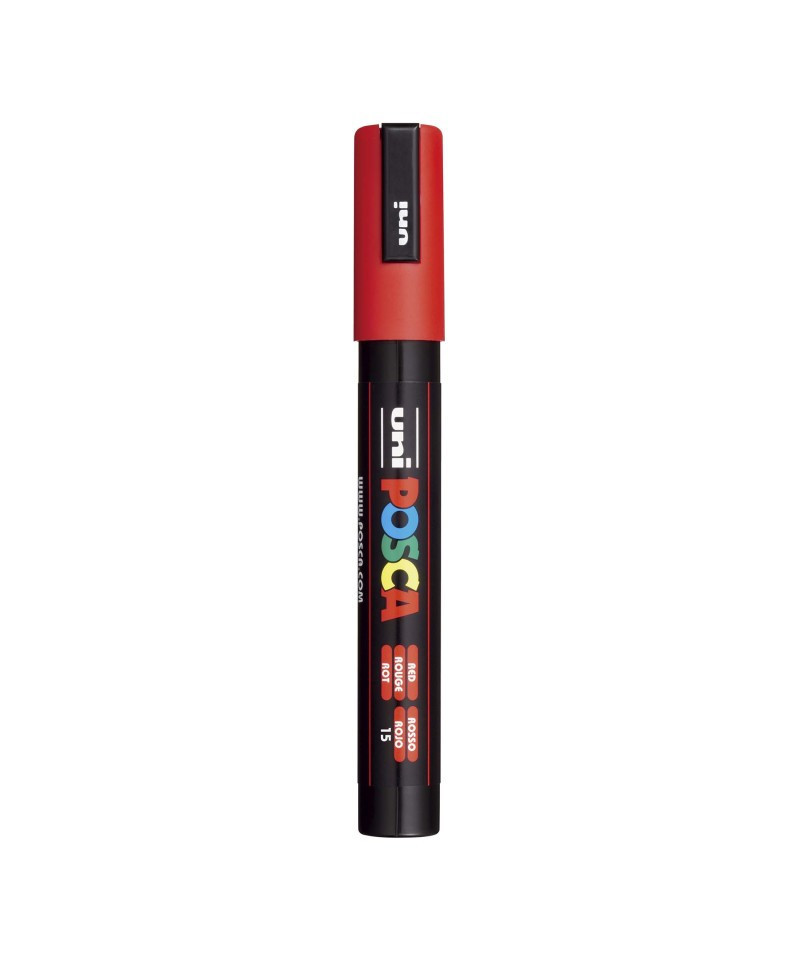 Create bold, vibrant artwork with the POSCA PC-5M Paint Marker, Reversible Medium Bullet Tip (1.8–2.5 mm), Red. This versatile paint marker is designed for smooth, even coverage on a wide range of surfaces, including paper, canvas, wood, metal, plastic, glass, ceramic, fabric, and stone. The medium bullet tip offers excellent control and flexibility, fine enough for outlining and lettering, yet broad enough for coloring, shading, and larger areas. The highly opaque, water-based paint applies cleanly, dries quickly to a matte finish, and resists smudging, bleeding, and fading. POSCA’s reversible tip can be removed, flipped, or replaced to extend the life of each marker. Ideal for illustration, mixed media, journaling, craft projects, customization, and classroom use, the PC-5M marker is one of POSCA’s most popular sizes for artists and students who need reliable, multi-surface performance.