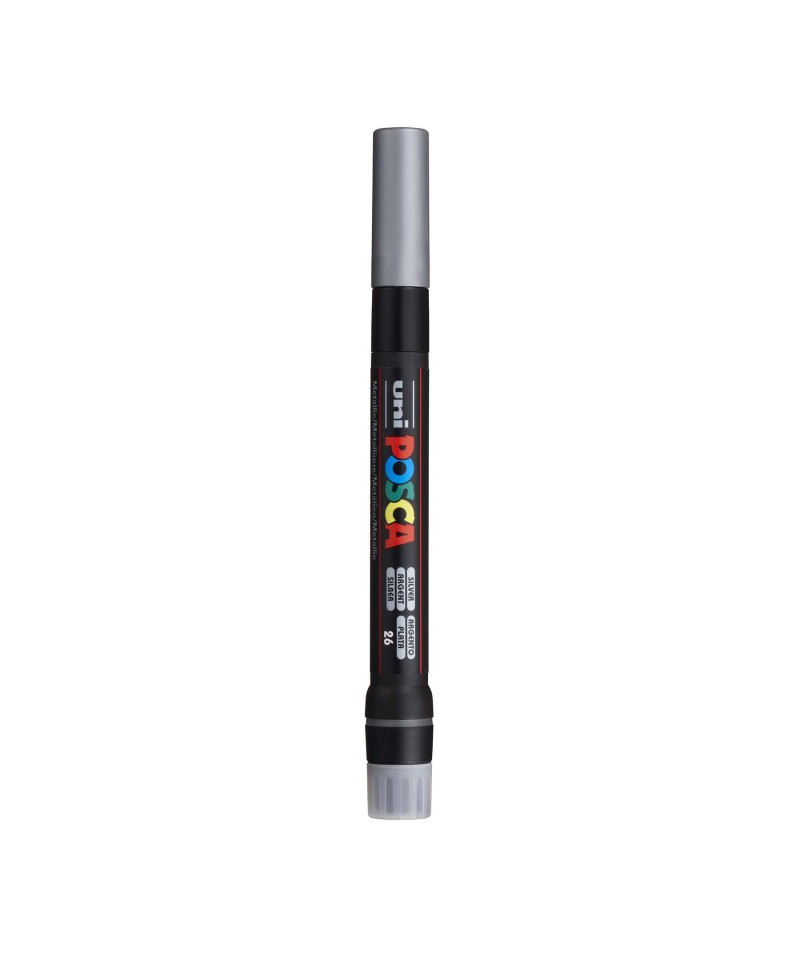 Create expressive, fluid strokes with the POSCA PCF-350 Paint Markers, Brush Tip (1–10 mm), Silver. Designed to mimic the feel and flexibility of a traditional paintbrush, this marker features a soft, tapered nylon brush tip that delivers dynamic line variation, from delicate, hairline details to broad, sweeping strokes. The water-based, highly opaque paint flows smoothly and dries quickly to a metallic silver finish, producing vibrant color on nearly any surface including paper, canvas, wood, glass, metal, plastic, stone, ceramic, and fabric. Ideal for calligraphy, illustration, brush lettering, watercolor-style effects, and mixed-media artwork, the PCF-350 allows artists to layer and blend color cleanly without smudging or bleed-through. The valve-controlled design ensures even paint distribution, while the durable brush tip maintains its shape for long-lasting performance. Perfect for beginners and professionals alike, this marker brings POSCA’s signature versatility to brush-style painting and precision detail work.