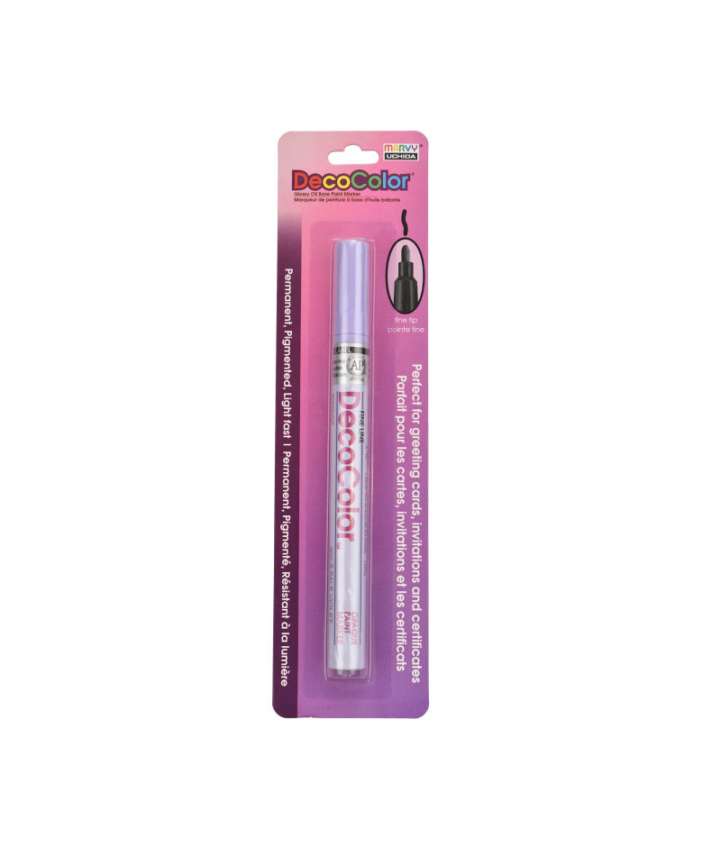 Create clean, permanent lines on a wide variety of surfaces with the DecoColor® Paint Marker, Fine Tip, 200-S, Pale Violet by Marvy Uchida®. This versatile marker features a fine point that delivers smooth, controlled application ideal for labeling, outlining, detailing, and decorative artwork. The oil-based, pigmented ink provides strong opacity, dries permanently, and remains lightfast for long-lasting color. It is acid free, weatherproof, and designed to cover most non-coated surfaces including glass, clay, wood, stone, porcelain, mirrors, metal, and paper. The durable formula includes xylene for enhanced adhesion and performance, making it suitable for indoor and outdoor projects where permanence is essential. Users should test the marker on an inconspicuous area first, as results may vary depending on surface type, finish, climate, and material composition. DecoColor® Fine Tip Paint Markers are ideal for artists, hobbyists, and makers who need crisp, reliable, permanent marks across multiple hard surfaces.