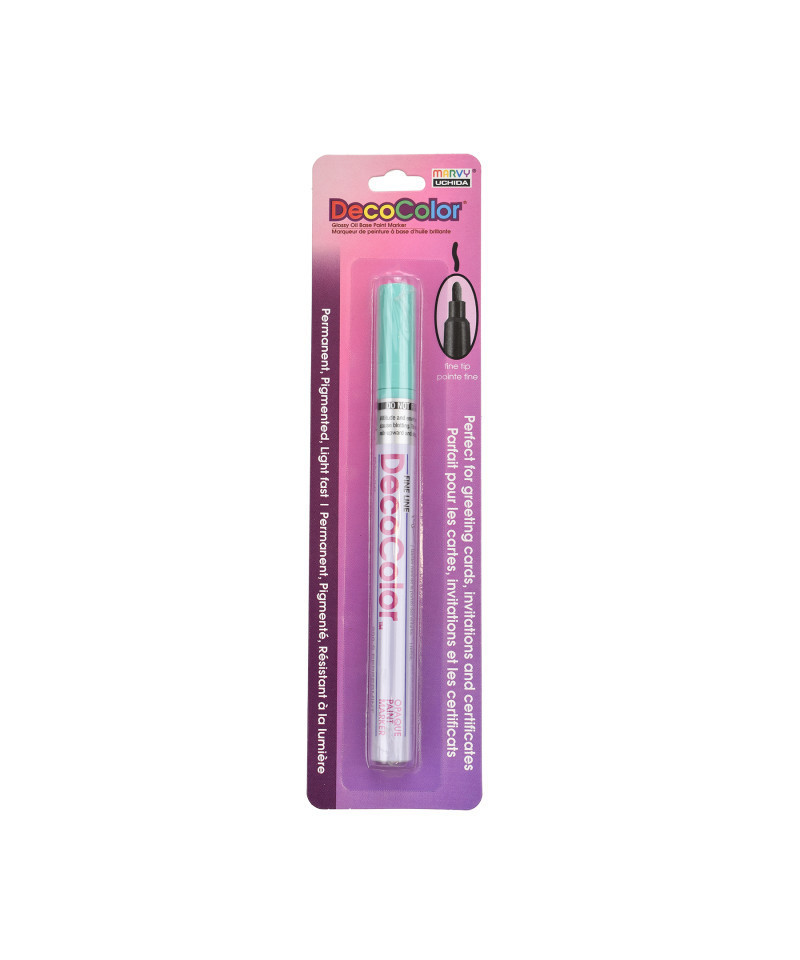 Create clean, permanent lines on a wide variety of surfaces with the DecoColor® Paint Marker, Fine Tip, 200-S, Peppermint by Marvy Uchida®. This versatile marker features a fine point that delivers smooth, controlled application ideal for labeling, outlining, detailing, and decorative artwork. The oil-based, pigmented ink provides strong opacity, dries permanently, and remains lightfast for long-lasting color. It is acid free, weatherproof, and designed to cover most non-coated surfaces including glass, clay, wood, stone, porcelain, mirrors, metal, and paper. The durable formula includes xylene for enhanced adhesion and performance, making it suitable for indoor and outdoor projects where permanence is essential. Users should test the marker on an inconspicuous area first, as results may vary depending on surface type, finish, climate, and material composition. DecoColor® Fine Tip Paint Markers are ideal for artists, hobbyists, and makers who need crisp, reliable, permanent marks across multiple hard surfaces.