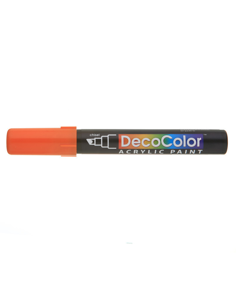 Create bold, versatile strokes with the DecoColor® Acrylic Paint Marker, Chisel Tip, 315-S, Orange by Marvy Uchida®. Designed for smooth application on a wide range of craft and art surfaces, this marker features a 3-way chisel tip that allows artists to produce broad strokes, thin lines, and precise angled marks with a single tool. The opaque, pigmented acrylic paint is acid free, non-toxic, and permanent when dry, making it ideal for both indoor and outdoor projects. It works beautifully on wood, plaster, foam, walls, paper, terra cotta, and other porous or semi-porous surfaces. These markers are an excellent choice for school projects, decorative outdoor crafts like painted flower pots and benches, signage, and general arts-and-crafts creativity. Easy to control and reliable in coverage, the DecoColor® Acrylic Chisel Tip Marker offers strong color payoff and durable performance for students, hobbyists, and creative makers.