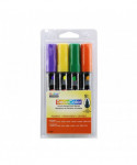 Create bold, versatile strokes with the DecoColor® Acrylic Paint Markers, Chisel Tip, Festive Colors Set of 4 by Marvy Uchida®. Designed for smooth application on a wide range of craft and art surfaces, this marker features a 3-way chisel tip that allows artists to produce broad strokes, thin lines, and precise angled marks with a single tool. The opaque, pigmented acrylic paint is acid free, non-toxic, and permanent when dry, making it ideal for both indoor and outdoor projects. It works beautifully on wood, plaster, foam, walls, paper, terra cotta, and other porous or semi-porous surfaces. These markers are an excellent choice for school projects, decorative outdoor crafts like painted flower pots and benches, signage, and general arts-and-crafts creativity. Easy to control and reliable in coverage, the DecoColor® Acrylic Chisel Tip Marker offers strong color payoff and durable performance for students, hobbyists, and creative makers. Colors included: violet, yellow, green, orange.