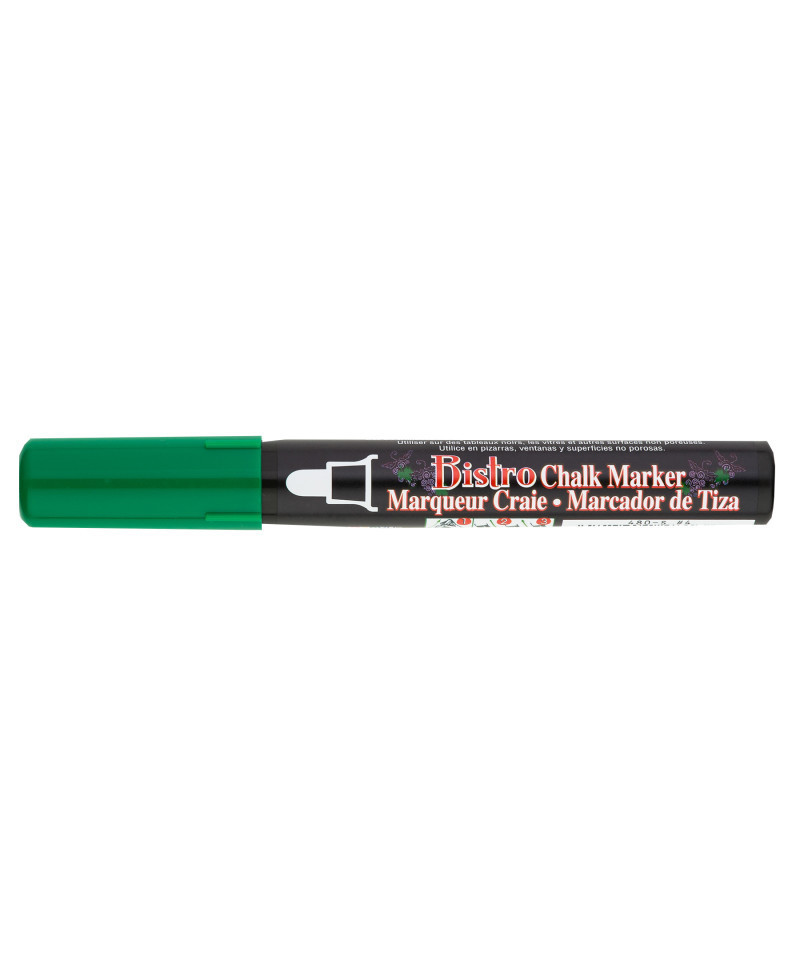Create bright, eye-catching messages nearly anywhere with the Bistro Chalk Marker, Broad Tip, 480, Green by Marvy Uchida®. Designed for everyday use in classrooms, cafés, studios, offices, and home spaces, this versatile chalk marker works on chalkboards, dry-erase boards, light boards, windows, mirrors, windshields, and most non-porous surfaces. The 6 mm broad tip produces bold, highly visible strokes ideal for signage, menu boards, announcements, decorative lettering, and seasonal displays. Filled with opaque, pigmented, water-based ink, the marker delivers vibrant color that cleans up easily—simply erase with a damp cloth for quick updates or redesigns. Bistro Chalk Markers offer smooth application and reliable coverage without dust or mess. Perfect for teachers, artists, business owners, and everyday creators, this marker provides a clean, modern alternative to traditional chalk with long-lasting clarity.