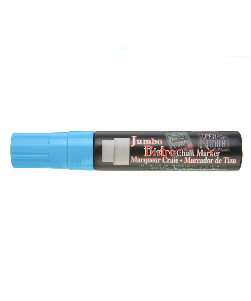 Make bold, high-impact statements with the Jumbo Bistro Chalk Marker, 481, Fluorescent Blue by Marvy Uchida®. Designed for large-format writing and highly visible signage, this marker features an extra-wide 16 mm tip that produces thick, vibrant strokes perfect for menu boards, event signage, window art, classroom displays, and retail promotions. The opaque, pigmented, water-based ink glides smoothly and works on chalkboards, dry-erase boards, light boards, windows, mirrors, windshields, and other non-porous surfaces. It’s an excellent choice for teachers, café owners, artists, and businesses that need crisp, attention-grabbing lettering. Ink cleans up easily with a damp cloth, making updates fast and mess-free. Available in multiple bright colors, Jumbo Bistro Chalk Markers offer dust-free application, strong color payoff, and versatility for creative and commercial use. Perfect for both indoor and outdoor displays that require maximum visibility.