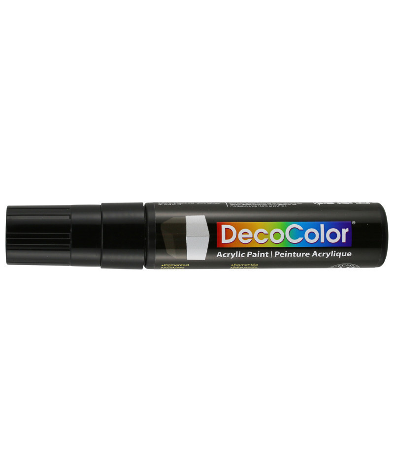 Create bold, high-impact marks on a wide variety of surfaces with the DecoColor® Acrylic Paint Marker, 515-C, Wedge Tip, Black by Marvy Uchida®. This marker features a large 15 mm wedge tip that allows for both thick, slab-like strokes and thin, controlled lines, making it ideal for signage, labeling, murals, posters, and decorative artwork. The opaque, water-based acrylic paint is highly pigmented, acid free, non-toxic, and permanent when dry. It applies smoothly and adheres well to surfaces such as paper, wood, metal, plastic, stone, glass, and terra cotta. The broad, flat nib provides excellent shape retention and strong paint flow for consistent, clean coverage. Perfect for classrooms, studios, businesses, and creative spaces, DecoColor® Acrylic Paint Markers offer a dust-free, vibrant alternative to traditional paint for large lettering and bold visual accents.