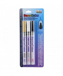 Create clean, permanent lines on a wide variety of surfaces with the DecoColor® Paint Marker, Extra Fine Tip, 1234-S, Set of 3 by Marvy Uchida®. This versatile marker features an extra fine point that delivers smooth, controlled application ideal for labeling, outlining, detailing, and decorative artwork. The oil-based, pigmented ink provides strong opacity, dries permanently, and remains lightfast for long-lasting color. It is acid free, weatherproof, and designed to cover most non-coated surfaces including glass, clay, wood, stone, porcelain, mirrors, metal, and paper. The durable formula includes xylene for enhanced adhesion and performance, making it suitable for indoor and outdoor projects where permanence is essential. Users should test the marker on an inconspicuous area first, as results may vary depending on surface type, finish, climate, and material composition. DecoColor® Fine Tip Paint Markers are ideal for artists, hobbyists, and makers who need crisp, reliable, permanent marks across multiple hard surfaces. Colors included: (1) Gold, (1) Black, (1) White.