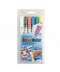 Create clean, permanent lines on a wide variety of surfaces with the DecoColor® Paint Marker, Extra Fine Tip, 1234-S, Set of 3 by Marvy Uchida®. This versatile marker features an extra fine point that delivers smooth, controlled application ideal for labeling, outlining, detailing, and decorative artwork. The oil-based, pigmented ink provides strong opacity, dries permanently, and remains lightfast for long-lasting color. It is acid free, weatherproof, and designed to cover most non-coated surfaces including glass, clay, wood, stone, porcelain, mirrors, metal, and paper. The durable formula includes xylene for enhanced adhesion and performance, making it suitable for indoor and outdoor projects where permanence is essential. Users should test the marker on an inconspicuous area first, as results may vary depending on surface type, finish, climate, and material composition. DecoColor® Fine Tip Paint Markers are ideal for artists, hobbyists, and makers who need crisp, reliable, permanent marks across multiple hard surfaces. Colors included: white, black, red, blue, green, yellow.