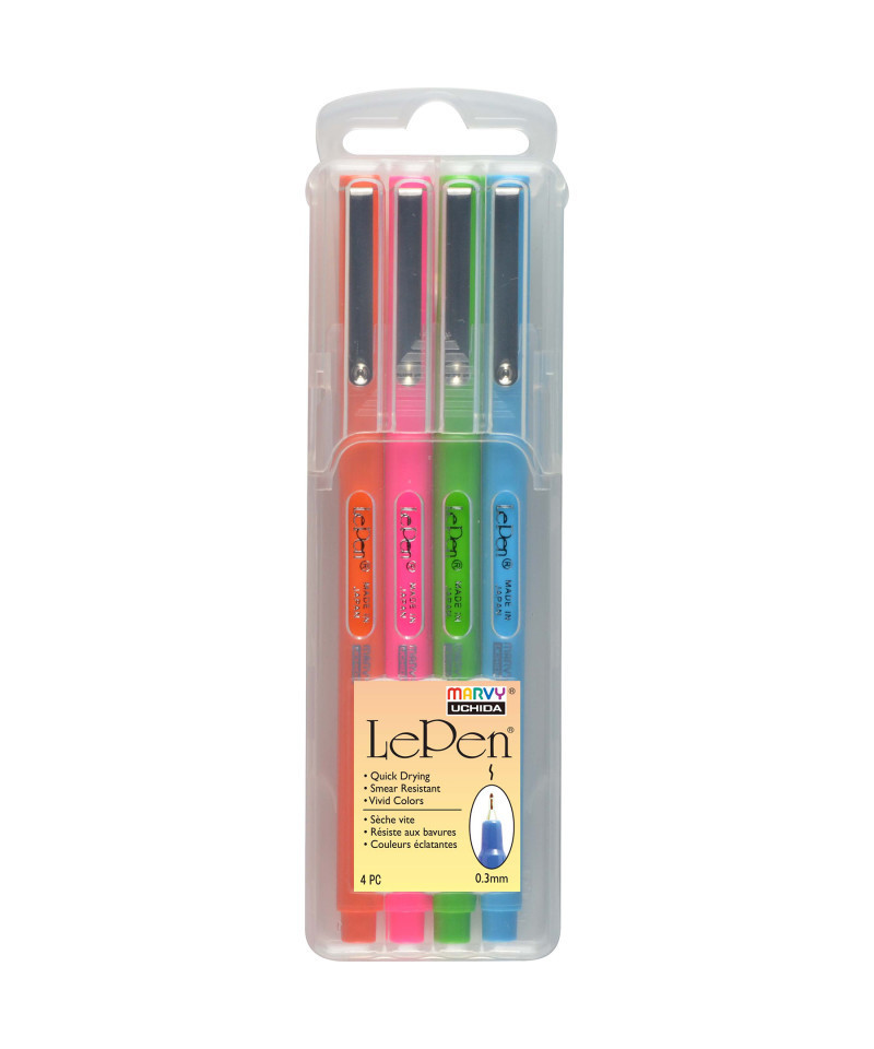 Create clean, precise lines with the Le Pen® Drawing Pens, Bright Colors, 0.3 mm Tip, Set of 4 by Marvy Uchida®. Designed for artists, students, planners, designers, and journalers, this set includes four bright colors, orange, pink, light blue, and light green, each equipped with a reliable 0.3 mm fine tip for crisp, controlled writing and detailed illustration. The water-based, pigmented ink is acid free, non-toxic, lightfast, and smudge resistant, ensuring long-lasting clarity on paper. These pens deliver smooth, consistent flow ideal for outlining, sketching, handwriting, labeling, bullet journaling, and technical drawing. Fast-drying ink prevents smearing, while the fine point maintains sharp line quality for precise work. Compact, lightweight, and easy to handle, Le Pen Drawing Pens provide dependable, professional-grade performance perfect for everyday creative and organizational tasks.