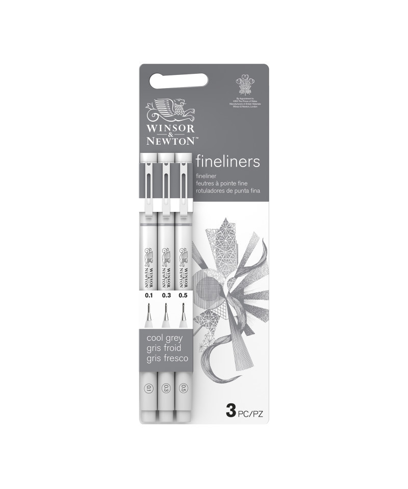 Create soft, subtle line work with the Fineliner Pens, Cool Grey, Assorted Sizes, Set of 3 by Winsor & Newton. This curated set features three essential nib sizes, 0.1 mm, 0.3 mm, and 0.5 mm, crafted for precision, control, and smooth ink performance. Each pen delivers archival-quality cool grey ink formulated for clean, skip-free marks on a variety of papers, making them ideal for illustration, sketching, architectural drawing, journaling, and design work.