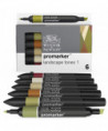 Bring natural environments to life with the Winsor & Newton Promarker™ Landscape Tones 1, Set of 6, a curated palette designed specifically for drawing trees, foliage, soil, rocks, rustic textures, and earthy outdoor scenes. This set includes Champagne, Firebrick, Herb Green, Pesto, Praline, and Saddle Brown, offering a harmonized selection of warm and cool earth tones ideal for landscape studies, environmental concept art, botanical illustration, and plein-air style sketching.