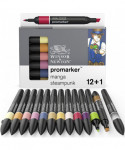 Bring retro-futuristic characters and industrial fantasy worlds to life with the Winsor & Newton Promarker™ Manga Steampunk, Set of 12+1. This specialized palette includes 12 Promarkers™ plus one Blender, designed to support sepia-inspired palettes, metallic accents, warm neutrals, and dramatic contrasts typical of the steampunk genre. The colors included, Soft Lime, Mustard, Ginger, Satin, Salmon Pink, Crimson, Dusky Rose, Aubergine, Midnight Blue, Bright Green, Caramel, and Burnt Sienna, offer a perfect blend of earthy tones, muted industrial hues, and bold highlights for character design, mechanical elements, accessories, and atmospheric storytelling.