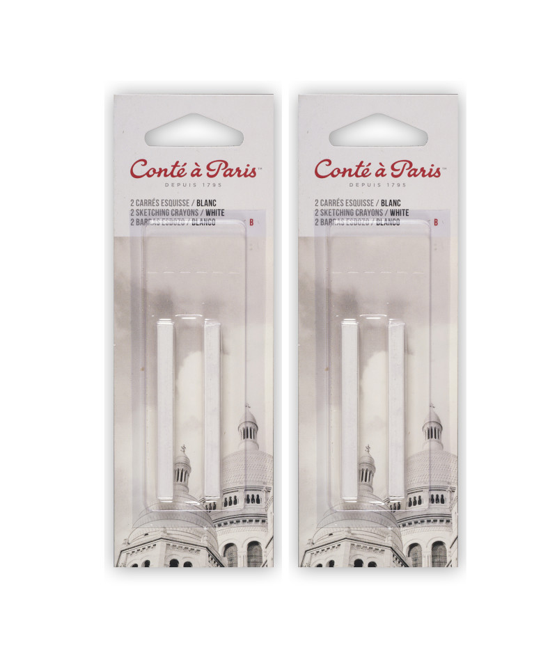 Bring soft, luminous highlights to your artwork with Conté à Paris Carrés Esquisse Sketching Pastel Crayons, White B, Pack of 2. These square sketching crayons feature a slightly softer composition than Conté pencils, producing velvety marks and smooth tonal transitions. The White B grade offers gentle blending capabilities ideal for light accents, negative drawing, and sketching on toned or dark papers. Perfect for figure drawing, studies, and expressive mixed-media work, these crayons pair beautifully with Red, Bistre, and Black Conté tones. The B grade provides soft laydown for subtle shading and delicate gradations in fine art applications. Sold as 2 packs with 2 per pack.