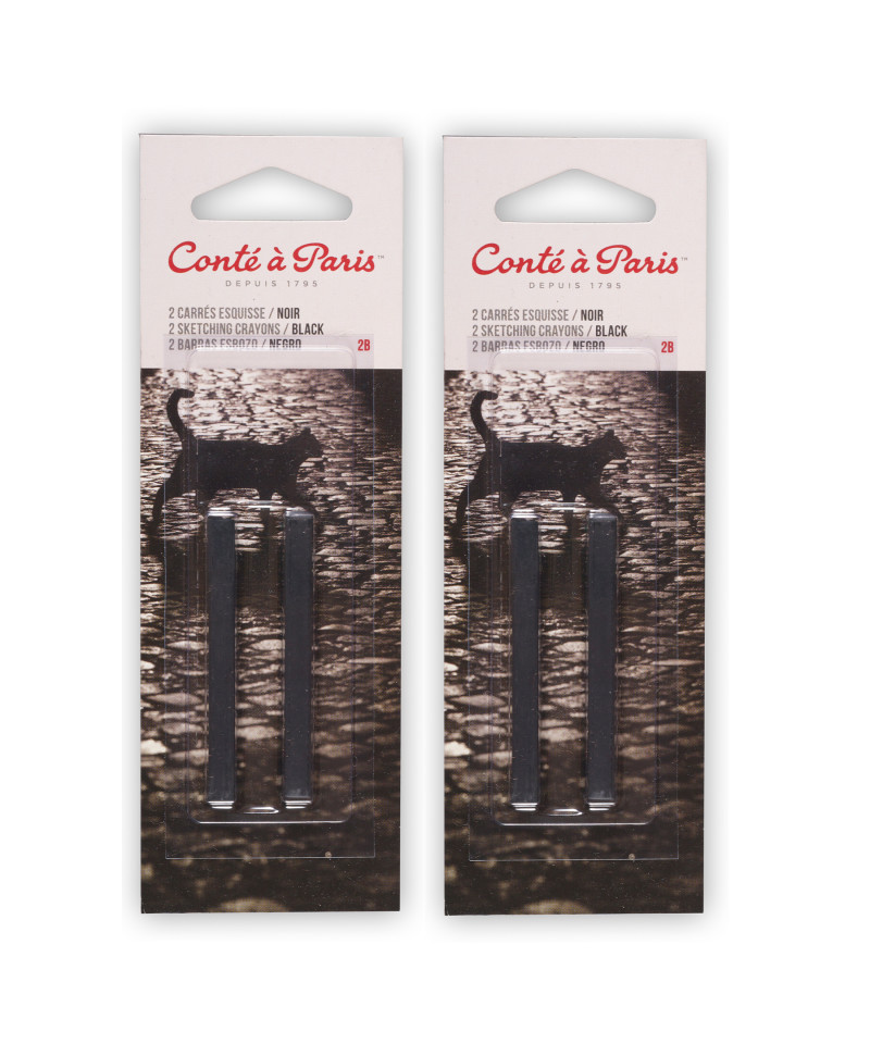 Explore expressive shadow and tone with Conté à Paris Carrés Esquisse Sketching Pastel Crayons, Black 2B, Set of 2. The softest grade in the Black series, these square sketching crayons glide smoothly across the surface to deliver deep, velvety blacks and rich gradients. Their buttery texture allows effortless blending, layering, and smudging for dynamic chiaroscuro effects. Ideal for life drawing, portrait studies, and dramatic tonal work, the 2B grade provides bold coverage without sacrificing control. Pair with White, Red, or Bistre Conté crayons to achieve a full tonal range. A favorite among artists and educators, Conté à Paris continues its heritage of precision and quality craftsmanship. Sold as 2 packs with 2 per pack.