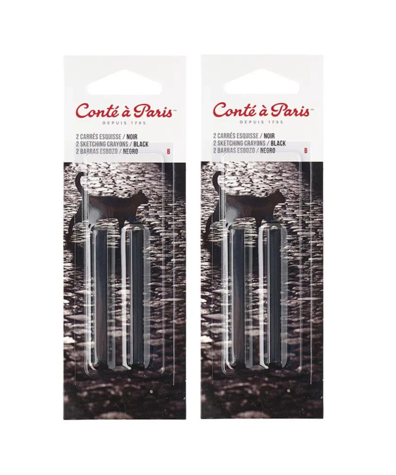 Achieve expressive depth and contrast with Conté à Paris Carrés Esquisse Sketching Pastel Crayons, Black B, Set of 2. Each square crayon features a smooth, slightly softer core than Conté pencils, ideal for building tonal values and bold, dramatic sketches. The Black B variation provides rich, velvety coverage perfect for shading, outlining, and defining form on paper or toned surfaces. Excellent for studies, figure drawing, and mixed-media layering, these crayons blend effortlessly with White, Red, and Bistre Conté tones. The B grade offers soft laydown for controlled linework, subtle gradients, and expressive mark-making in professional and academic art settings. Sold as 2 packs with 2 per pack.