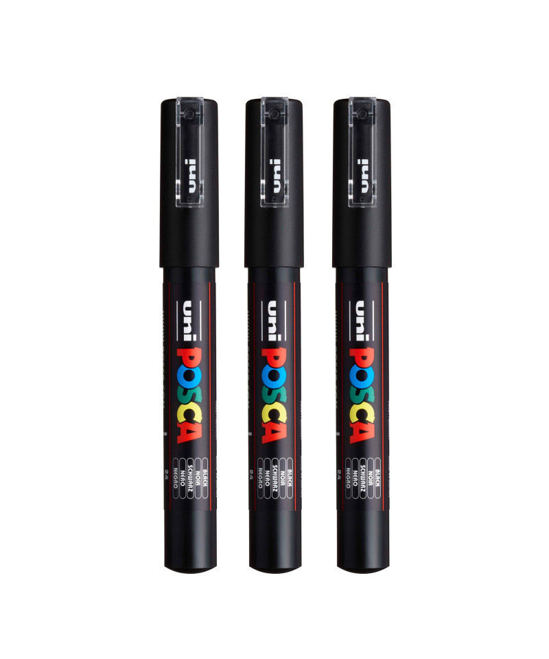 Create precise, detailed artwork with the POSCA PC-1M Paint Marker, Extra Fine Tip (0.7 mm), Black. Designed for controlled linework and intricate designs, this paint markers features an ultra-fine 0.7 mm tip that delivers crisp, consistent lines on nearly any surface. The water-based, highly opaque paint glides smoothly and dries to a matte finish, making it ideal for illustration, labeling, outlining, lettering, and small-format artwork. Colors layer cleanly without smudging or bleed-through, and the quick-drying pigment resists fading for long-lasting results. POSCA markers work beautifully on paper, wood, metal, glass, plastic, stone, textiles, and more, perfect for mixed media, personalization projects, and classroom activities. With vibrant hues and a reliable extra-fine point, the PC-1M paint marker offers artists and students professional-quality detail in a compact format. Sold as a pack of 3.