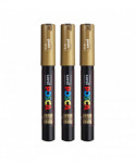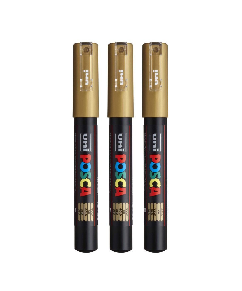 Create precise, detailed artwork with the POSCA PC-1M Paint Marker, Extra Fine Tip (0.7 mm), Gold. Designed for controlled linework and intricate designs, this paint markers features an ultra-fine 0.7 mm tip that delivers crisp, consistent lines on nearly any surface. The water-based, highly opaque paint glides smoothly and dries to a golden metallic finish, making it ideal for illustration, labeling, outlining, lettering, and small-format artwork. Colors layer cleanly without smudging or bleed-through, and the quick-drying pigment resists fading for long-lasting results. POSCA markers work beautifully on paper, wood, metal, glass, plastic, stone, textiles, and more, perfect for mixed media, personalization projects, and classroom activities. With vibrant hues and a reliable extra-fine point, the PC-1M paint marker offers artists and students professional-quality detail in a compact format. Sold as a pack of 3.