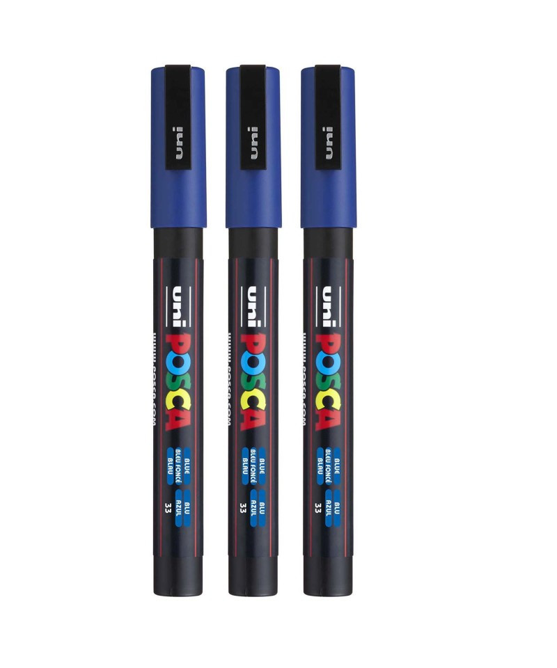Achieve smooth, precise lines with the POSCA PC-3M Paint Marker, Fine Bullet Tip (0.9–1.3 mm), Blue. This versatile marker size is perfect for controlled outlining, drawing, lettering, coloring, and detailed embellishment across a wide range of creative projects. The water-based, opaque paint delivers vivid, matte coverage on paper, canvas, wood, plastic, metal, glass, ceramic, stone, and fabric, making it one of the most popular multi-surface markers used by students, artists, and makers. The fine bullet tip provides consistent, clean strokes with excellent control, ideal for both small-scale artwork and refined mixed-media work. Colors dry quickly, layer smoothly, and resist smudging or bleed-through. With a valve-controlled ink system for even paint flow and highly pigmented paint that remains vibrant over time, POSCA PC-3M markers are the go-to choice for detail-rich creative expression on any surface. Sold as a pack of 3.