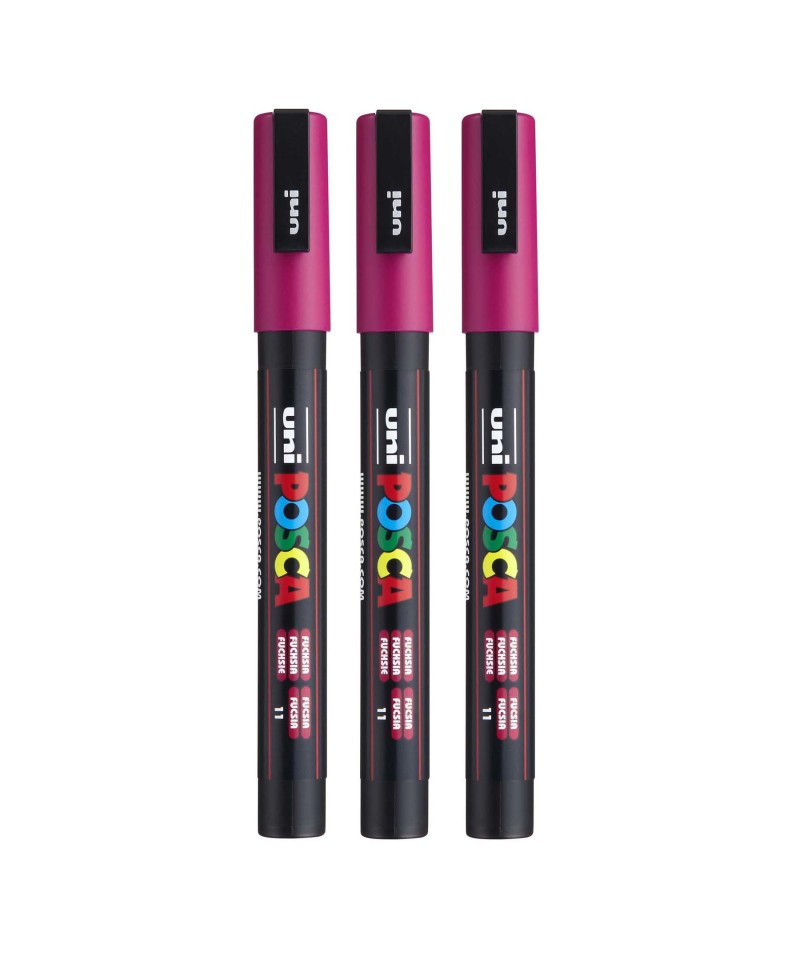 Achieve smooth, precise lines with the POSCA PC-3M Paint Marker, Fine Bullet Tip (0.9–1.3 mm), Fuchsia. This versatile marker size is perfect for controlled outlining, drawing, lettering, coloring, and detailed embellishment across a wide range of creative projects. The water-based, opaque paint delivers vivid, matte coverage on paper, canvas, wood, plastic, metal, glass, ceramic, stone, and fabric, making it one of the most popular multi-surface markers used by students, artists, and makers. The fine bullet tip provides consistent, clean strokes with excellent control, ideal for both small-scale artwork and refined mixed-media work. Colors dry quickly, layer smoothly, and resist smudging or bleed-through. With a valve-controlled ink system for even paint flow and highly pigmented paint that remains vibrant over time, POSCA PC-3M markers are the go-to choice for detail-rich creative expression on any surface. Sold as a pack of 3.