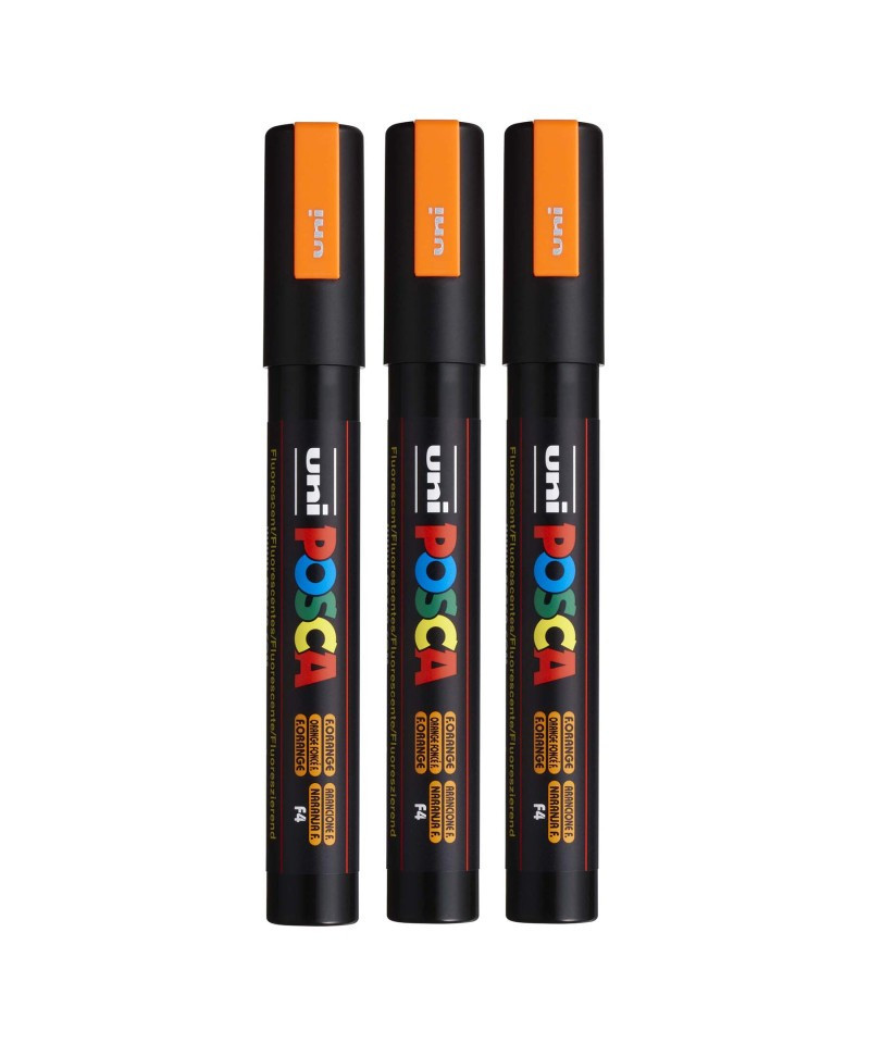 Create bold, vibrant artwork with the POSCA PC-5M Paint Marker, Reversible Medium Bullet Tip (1.8–2.5 mm), Fluorescent Orange. This versatile paint marker is designed for smooth, even coverage on a wide range of surfaces, including paper, canvas, wood, metal, plastic, glass, ceramic, fabric, and stone. The medium bullet tip offers excellent control and flexibility, fine enough for outlining and lettering, yet broad enough for coloring, shading, and larger areas. The highly opaque, water-based paint applies cleanly, dries quickly to a matte finish, and resists smudging, bleeding, and fading. POSCA’s reversible tip can be removed, flipped, or replaced to extend the life of each marker. Ideal for illustration, mixed media, journaling, craft projects, customization, and classroom use, the PC-5M marker is one of POSCA’s most popular sizes for artists and students who need reliable, multi-surface performance. Sold as a pack of 3.