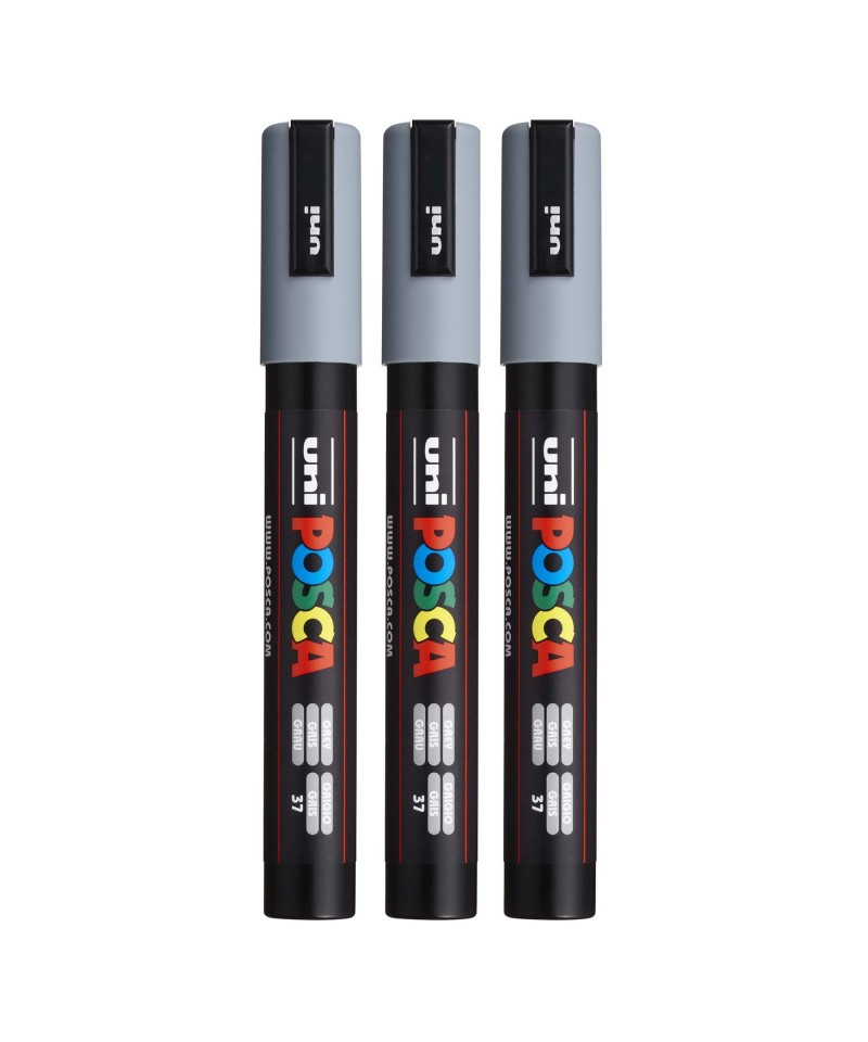 Create bold, vibrant artwork with the POSCA PC-5M Paint Marker, Reversible Medium Bullet Tip (1.8–2.5 mm), Grey. This versatile paint marker is designed for smooth, even coverage on a wide range of surfaces, including paper, canvas, wood, metal, plastic, glass, ceramic, fabric, and stone. The medium bullet tip offers excellent control and flexibility, fine enough for outlining and lettering, yet broad enough for coloring, shading, and larger areas. The highly opaque, water-based paint applies cleanly, dries quickly to a matte finish, and resists smudging, bleeding, and fading. POSCA’s reversible tip can be removed, flipped, or replaced to extend the life of each marker. Ideal for illustration, mixed media, journaling, craft projects, customization, and classroom use, the PC-5M marker is one of POSCA’s most popular sizes for artists and students who need reliable, multi-surface performance. Sold as a pack of 3.