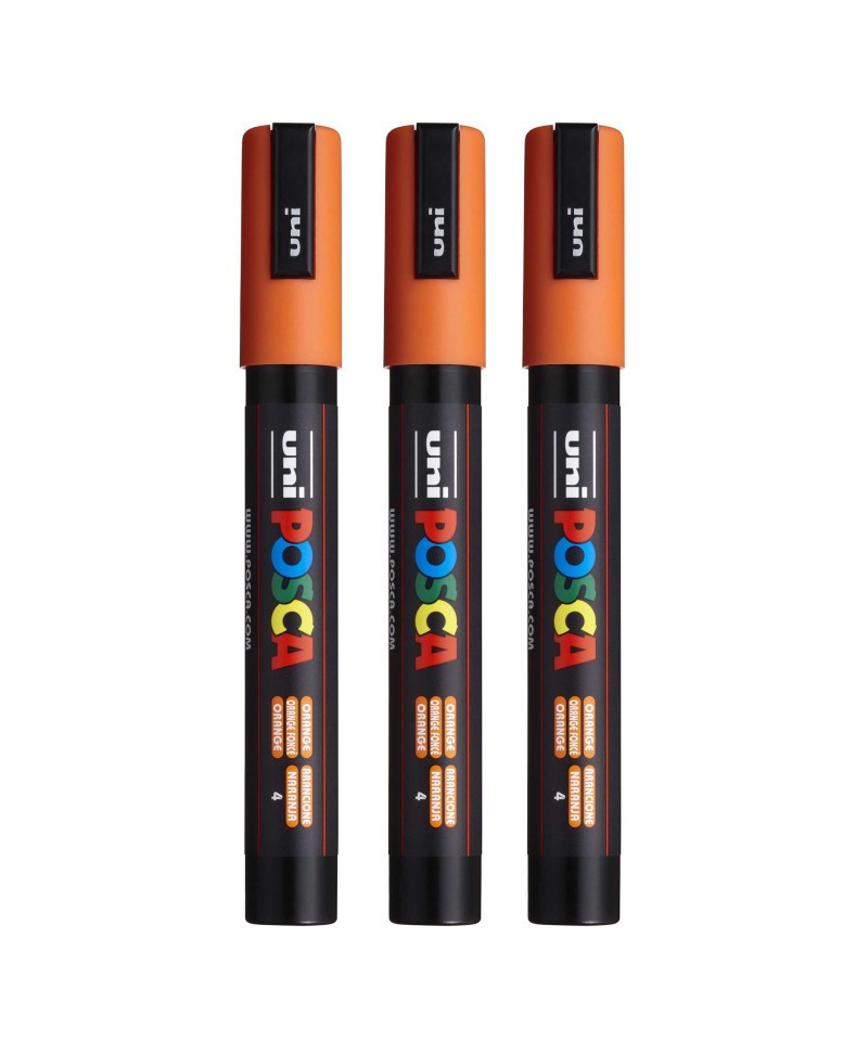 Create bold, vibrant artwork with the POSCA PC-5M Paint Marker, Reversible Medium Bullet Tip (1.8–2.5 mm), Orange. This versatile paint marker is designed for smooth, even coverage on a wide range of surfaces, including paper, canvas, wood, metal, plastic, glass, ceramic, fabric, and stone. The medium bullet tip offers excellent control and flexibility, fine enough for outlining and lettering, yet broad enough for coloring, shading, and larger areas. The highly opaque, water-based paint applies cleanly, dries quickly to a matte finish, and resists smudging, bleeding, and fading. POSCA’s reversible tip can be removed, flipped, or replaced to extend the life of each marker. Ideal for illustration, mixed media, journaling, craft projects, customization, and classroom use, the PC-5M marker is one of POSCA’s most popular sizes for artists and students who need reliable, multi-surface performance. Sold as a pack of 3.