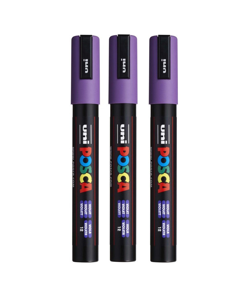 Create bold, vibrant artwork with the POSCA PC-5M Paint Marker, Reversible Medium Bullet Tip (1.8–2.5 mm), Violet. This versatile paint marker is designed for smooth, even coverage on a wide range of surfaces, including paper, canvas, wood, metal, plastic, glass, ceramic, fabric, and stone. The medium bullet tip offers excellent control and flexibility, fine enough for outlining and lettering, yet broad enough for coloring, shading, and larger areas. The highly opaque, water-based paint applies cleanly, dries quickly to a matte finish, and resists smudging, bleeding, and fading. POSCA’s reversible tip can be removed, flipped, or replaced to extend the life of each marker. Ideal for illustration, mixed media, journaling, craft projects, customization, and classroom use, the PC-5M marker is one of POSCA’s most popular sizes for artists and students who need reliable, multi-surface performance. Sold as a pack of 3.