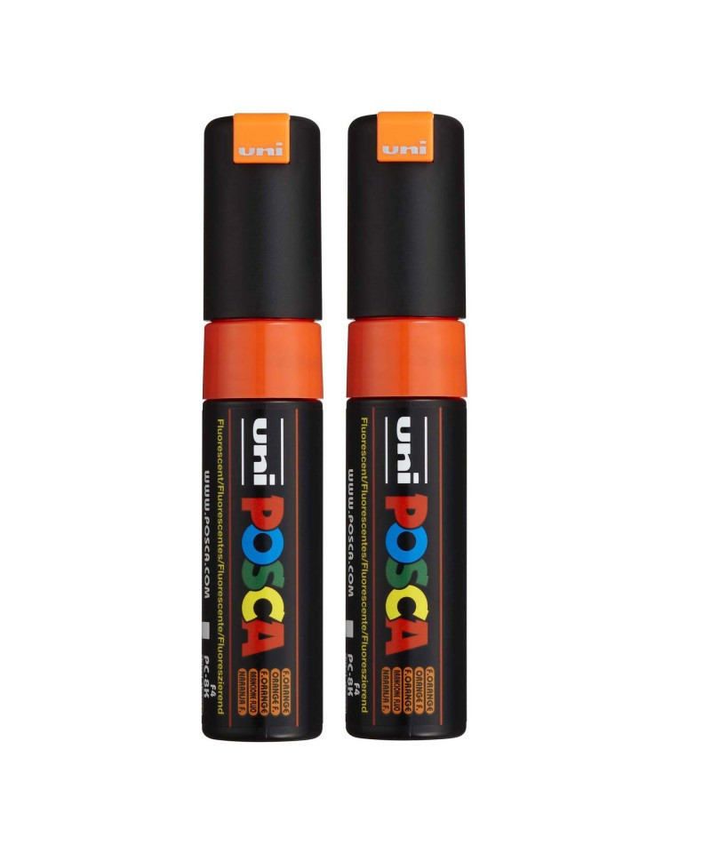 Create bold, high-impact marks with the POSCA PC-8K Paint Markers, Broad Chisel Tip (8 mm), Fluorescent Orange. Designed for large-scale artwork, lettering, murals, and expressive mixed-media applications, these markers deliver rich, opaque color on nearly any surface, including paper, canvas, wood, plastic, metal, glass, stone, ceramic, and fabric. The 8 mm chisel tip provides dynamic line variation, offering both wide coverage and sharp, clean edges, making it ideal for posters, signage, backgrounds, and graphic illustration. POSCA’s water-based, quick-drying paint applies smoothly, dries to a matte finish, and resists smudging and fading. The valve-controlled ink system ensures consistent paint flow, and the durable tip can be reversed or replaced for extended use. Whether in the studio, classroom, or creative workspace, PC-8K markers offer reliable, vibrant performance for artists who want bold strokes and confident color. Sold as a pack of 2.