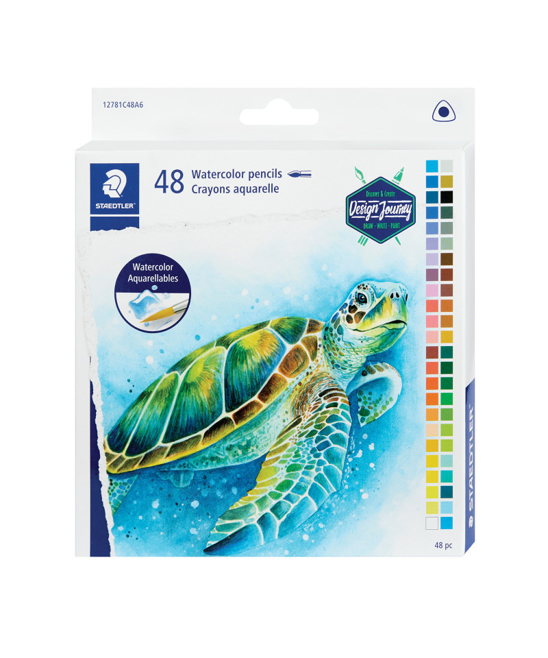 Discover the exceptional quality of Staedtler's 48-piece Watercolor Pencil Set. Made from sustainably sourced wood and featuring break resistant colored pencil core, they are built to withstand daily use. Their soft lead offers drawing comfort and a wide range of dry and water techniques in pigmented and bright colors. With vibrant pigmentation and impressive blending capabilities, these pencils are ideal for detailed illustrations and creative projects. Plus, the ergonomic, triangular shape prevents rolling and promotes a proper grip, making them the perfect choice for artists seeking reliable, high-quality coloring tools to elevate their craft.