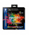Immerse yourself in a world of brilliant and vibrant colors! This Staedtler Pigment Arts Pen Set features New Multi Ink technology with premium pigments which means that you can achieve extreme lightfastness and exceptional color brilliance on a wide range of surfaces even after years of UV exposure. It is ideal for brush lettering, drawings, illustrations, or coloring. Transform your art into vivid and long-lasting masterpieces. Get Multi creative! This set of 36 assorted colors allows you a wide range of creative choices!