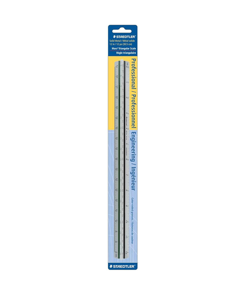 Level up your drafting game with this STAEDTLER aluminum triangular scale (987M1834BK). Ideal for engineers and architects, this 12-inch ruler features six easy-to-read scales with color-coded grooves for quick reference. Built from weather-resistant aluminum, it's your go-to drafting tool for precise measurements from 10 to 60 parts per inch. The durable construction and fade-resistant markings ensure this engineering ruler will be your reliable companion for years of accurate drawings and technical designs.
