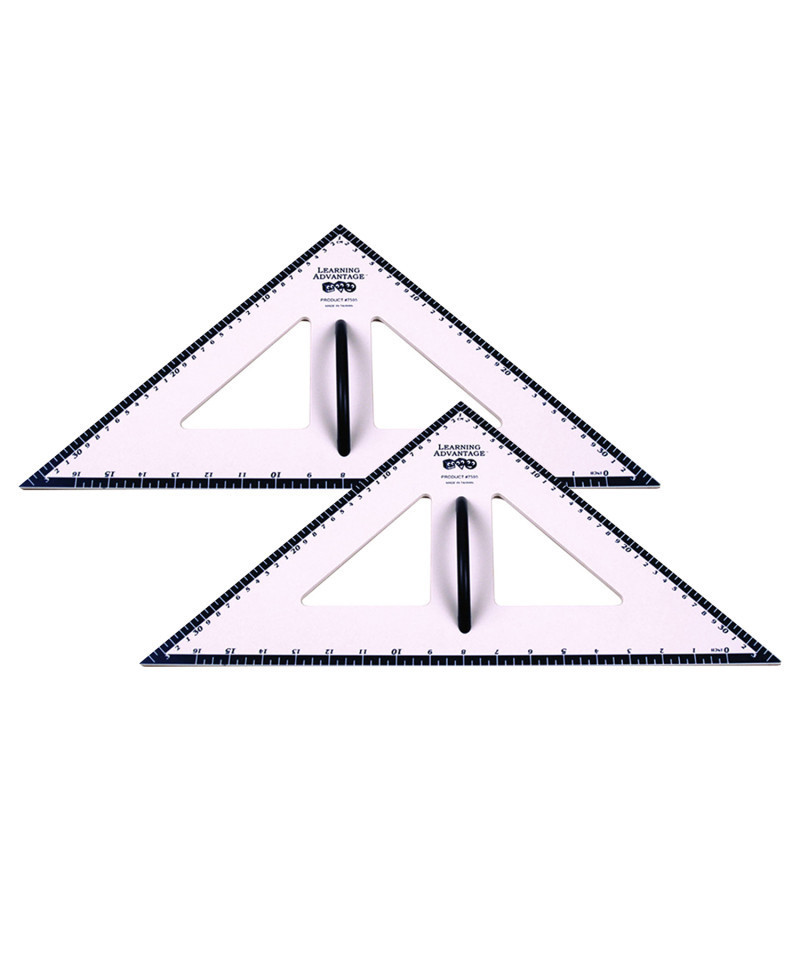 In addition to accurate measurements and precise construction, this tool is magnetic making it easy to secure to metal surfaces. Perfect for drawing angles and shapes for demonstration. Constructed of quality plastic, these instruments are durable and affordable. Marked in cm and inches. Longest side is 19.5" in length. Handle helps hold this oversized tool with ease. For teacher use only. Sold as a pack of 2.