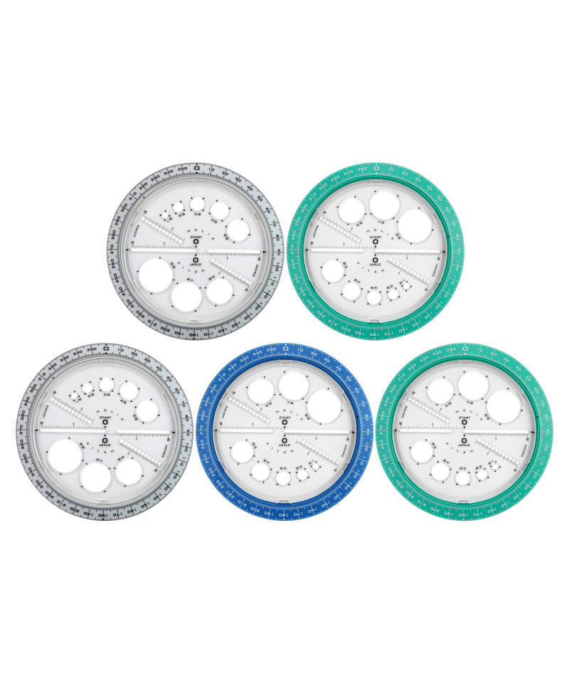 - Innovative tool combines a protractor, compass and circle templates all in one!