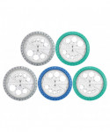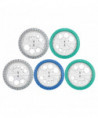 The 360° Angle & Circle Maker combines 3 Geometry tools into 1 innovative & exciting product! The 6" diameter outer ring acts as a classic protractor, while the separate inner circle easily rotates to draw circles just like a compass. And the 8 integrated circle templates built into the inner ring for drawing accurate small circles far easier than using a standard compass. Unique product is much easier for young children to manipulate and use than a standard compass, and the integrated design means that they can more easily understand how angles and measurements correspond with each other. The perfect tool for young students working on mastering geometry and angles! Sold as a pack of 5 in assorted colors Blue, Teal or Grey (no color choice).