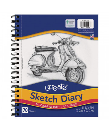 Medium weight sketch diary features bright white paper that is acid-free. Sheets are perforated for final art. Spiral bound on the side. Ideal for... Add to cart UCreate® Sketch Diary, Medium Weight, 11" x 9", 70 Sheets $9.35