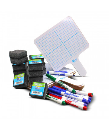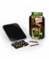 Two in one fun! The 8 unique, bright Dry Erase Crayons and Dual Sided Dry Erase Board let kids create on white or black surfaces! Includes E-Z Erase Cloth and crayon sharpener.