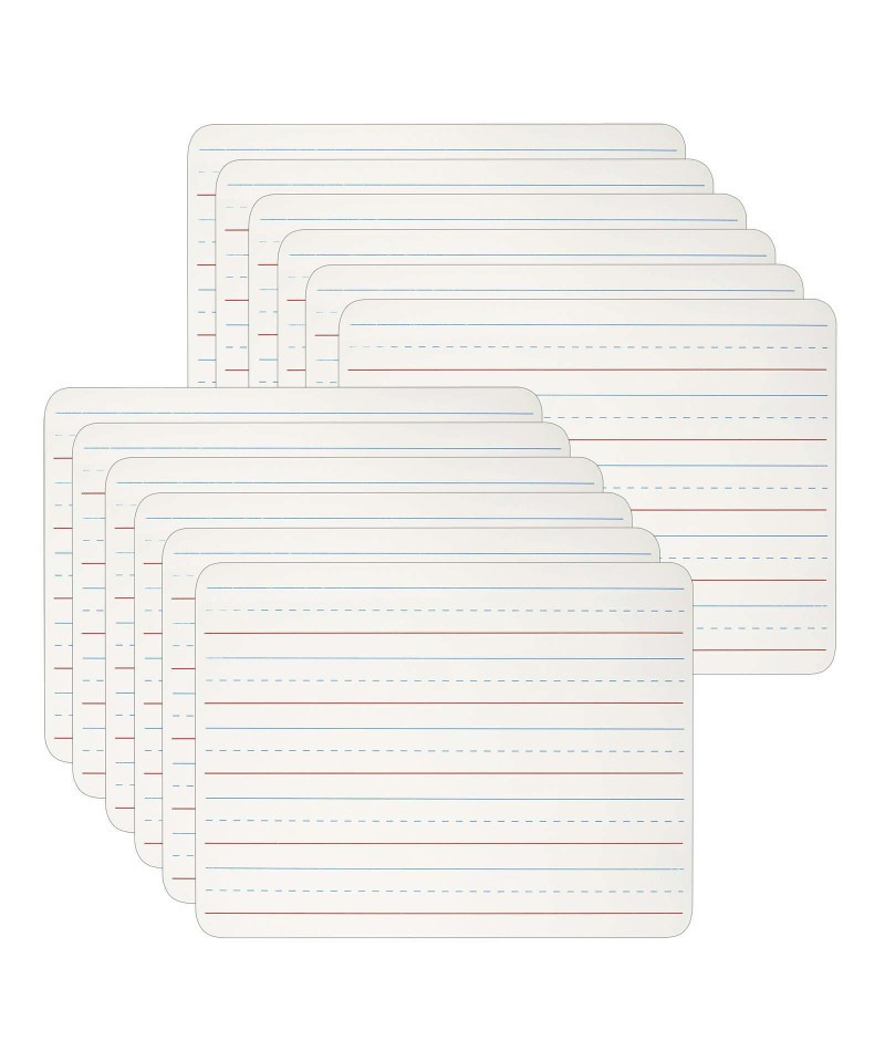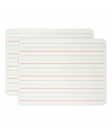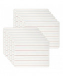 Pre-printed lines offer a great work place to practice penmanship, sentence writing and more. Durable masonite lap boards are 9" x 12" and can be used with all dry erase markers. An environment friendly way to learn, as you just write, wipe off and re-use with no waste. Pack of 12 boards.
