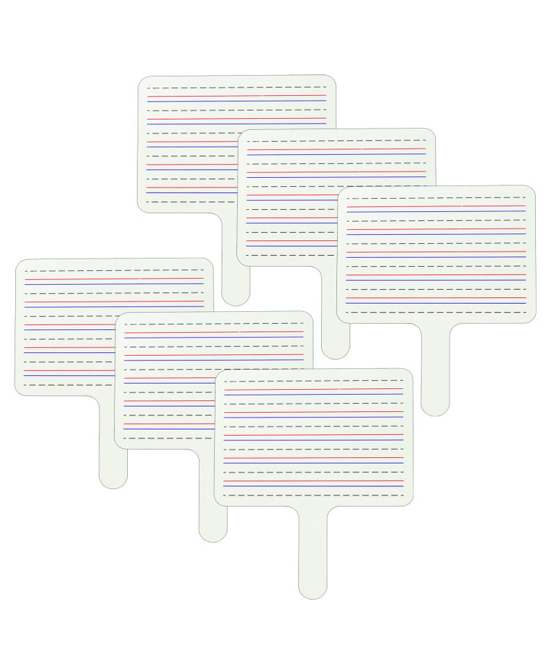 Allow children to be able to practice new skills almost anywhere with C-Line's latest study tool. Create an instant learning space with the Double Sided Dry Erase Lapboard. One side of the board is lined for practicing handwriting skills, while the other side is blank to allow free learning, drawing, math practice, etc. The board is rigid to allow students to practice their skills away from the desk or table. Easily clean with a soft dry cloth or tissue when used with a low-odor dry erase marker or dry erase crayon (not included). Sold as a pack of 6 answer paddles.