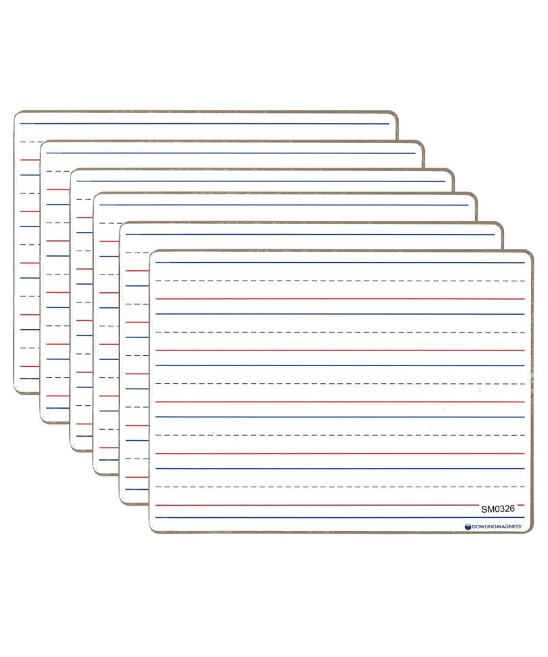 Twice the workspace – double-sided! Slim size and impressive durability make these ideal for student use. Pair with magnetic manipulatives and dry-erase markers (sold separately) in classroom centers, at home or for travel. Each magnetic-receptive board measures 12"L x 8.75"W and is Line-Ruled on side and Blank on the other. For Ages 3+/Grades PreK+. Pack of 6 boards.