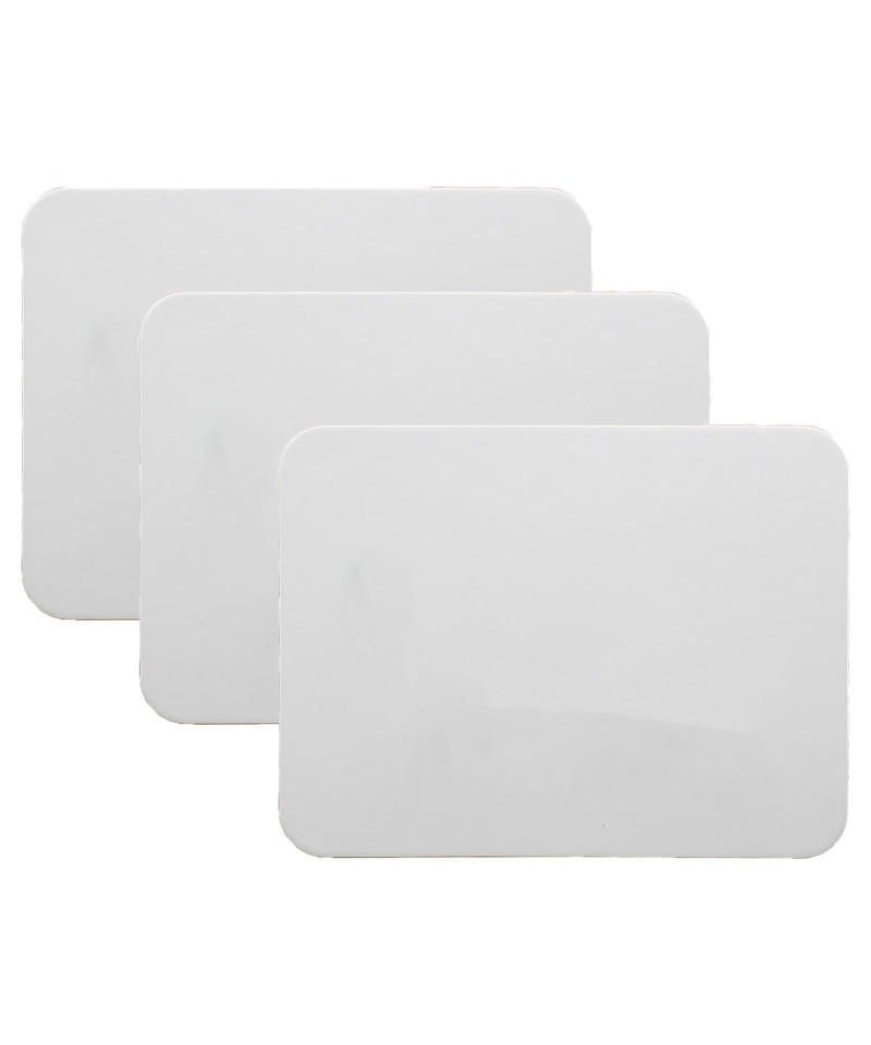 Economical, unframed lap board is two-sided with a magnetic-receptive plain dry erase surface on both sides. Ideal for academic practice, doodling and for use with magnetic manipulatives! Quality write-and-wipe surface is non-ghosting. Rounded corners for safety and comfort. Hardboard backing is warp and chip resistant. Boards measure 9" x 12" x 0.125". Pack of 3 Magnetic Dry Erase Boards.