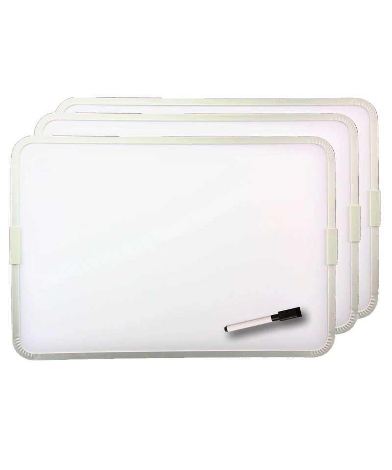 Both dry erase and magnetic, this board is perfect for use in a classroom, at home, or at the office. Features a magnetic and non-magnetic side for use. Comes with a magnetic dry-erase marker pen with cap eraser. Measures 12" x 17.5". Pack of 3 boards, each with marker.