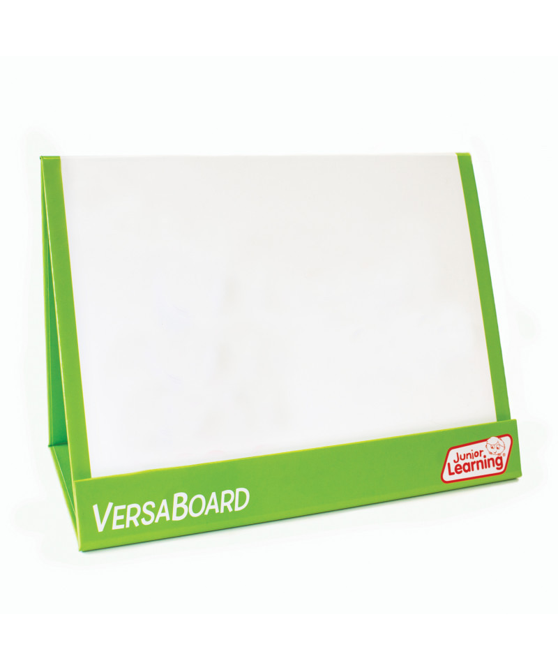 The Versaboard is an ingenious magnetic board that converts from a flat board into a tent-shaped board. Flat board is and can comfortably accommodate the Alphabet Arc (sold separately). The write and wipe surface can be used with a whiteboard marker or for placing magnetic resources.