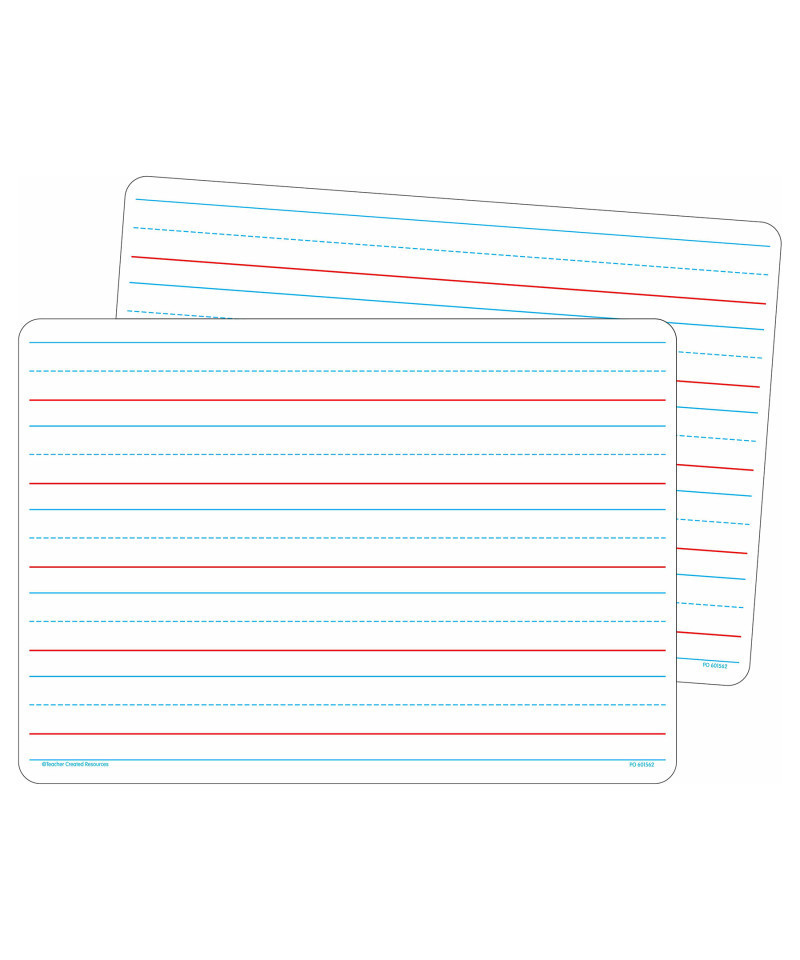 The Double-Sided Writing Dry Erase Boards have a non-ghosting, write-on/wipe-off surface will not dull over time. One side has write-on lines, the other side is blank. Each sturdy board measures 8.25" x 11.75". Includes 10 boards.