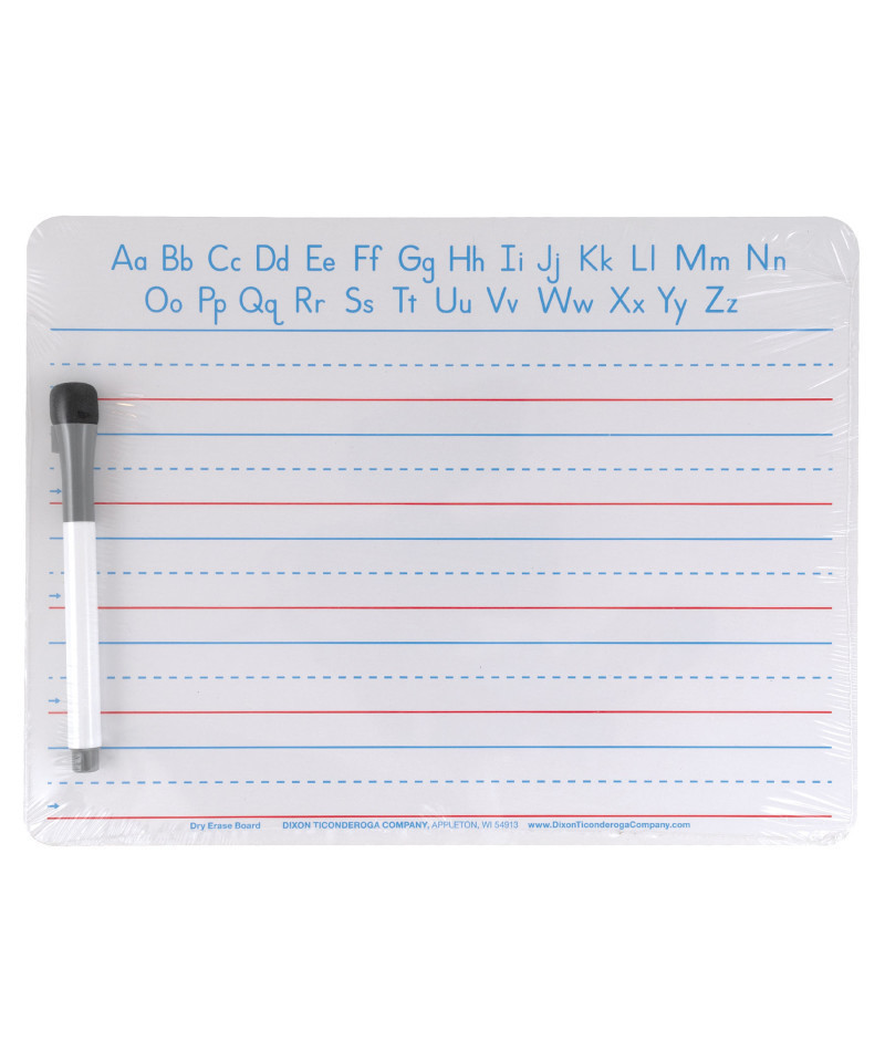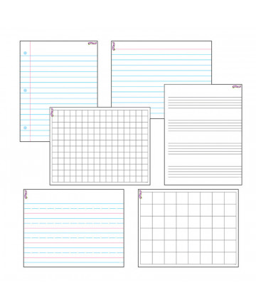 Everything you need for practicing penmanship, writing or creating your own masterpiece – all in one handy pack! This sturdy melamine white board set comes complete with a board, dry erase marker and built-in eraser. Perfect for the classroom, home and even travel. This board is double-sided, with 1" x 1/2" x 1/2" ruling on one side and an unruled dry erase surface on the other. Keeps kids engaged and willing to spend their time practicing and using their imagination for creative fun! Board measures 9" x 12".