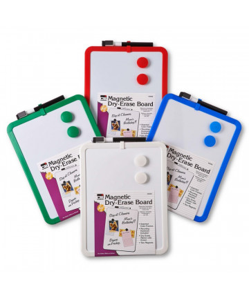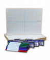 Two-sided boards feature a grid with accentuated X and Y axis on one side, and a plain white surface on the other. Reduces paper use while allowing students to master their skills! Boards measure 9" x 12". Set includes 12 boards, 12 erasers, and 12 colored pens (3 of each color: red, green, blue, purple).