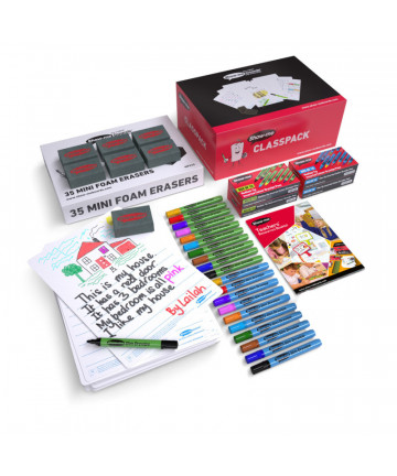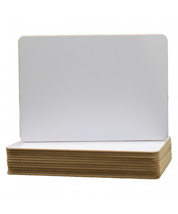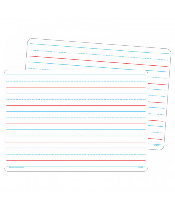 Learning to write takes practice, practice, practice. Ruled dry erase boards make that happen while saving paper. Sized to sit on a desk or a lap, these boards will get your students on their way to mastering handwriting quickly! Boards measure 9" x 12". Each set includes 12 boards, 12 erasers, and 12 colored pens (3 of each color; red, blue, green, purple).