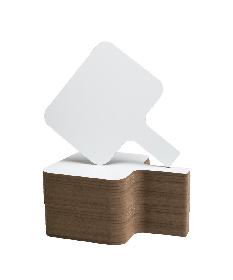 Make everything more fun with a dry erase paddle that can be used for answering questions, bidding, casting votes, ranking items and oral quizzes. Great for everyone to be actively involved in the classroom and easy for the teachers to see who answered the questions correctly. Wipes easily for the next use. Non-ghosting, high quality surface, with a larger area to write on. Hardboard backing is warp and chip resistant. Smooth edges for safety and comfort. Paddle measures 8" x 9.75" x 0.25". Pack of 24.
